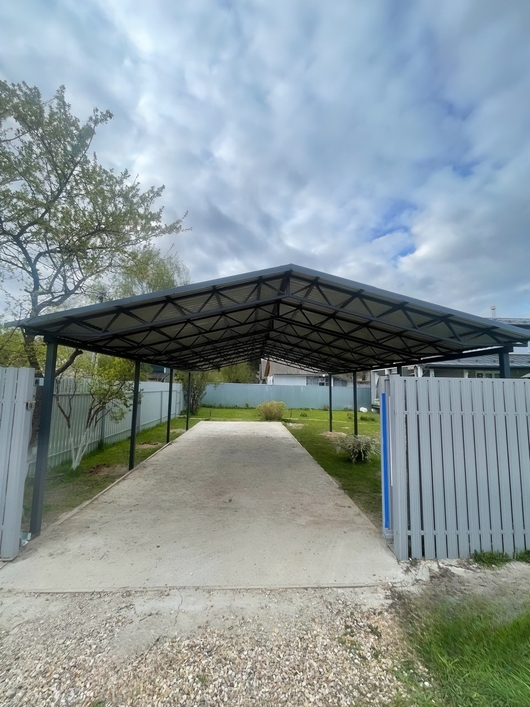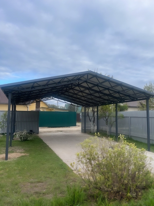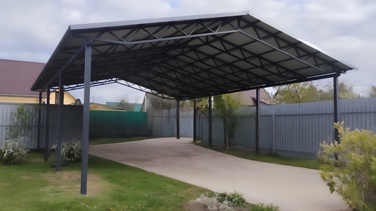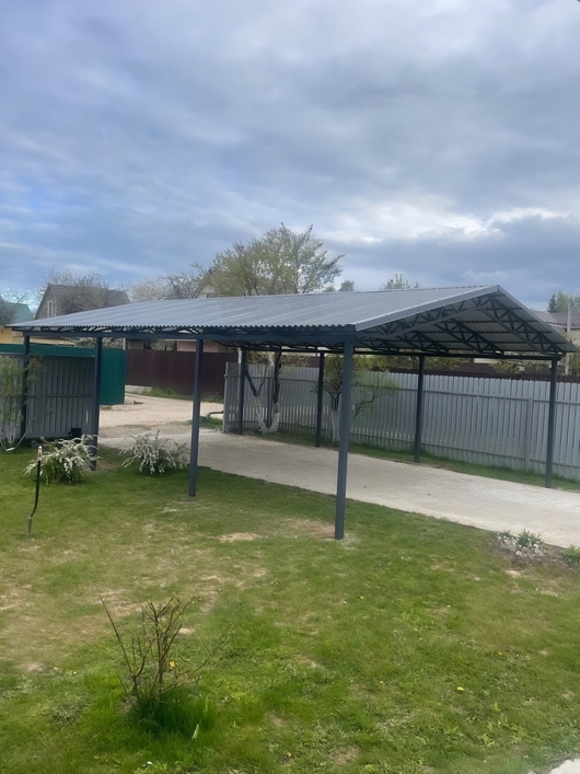 Двускатный навес из профнастила для зоны стоянки автомобиля Арт-700
